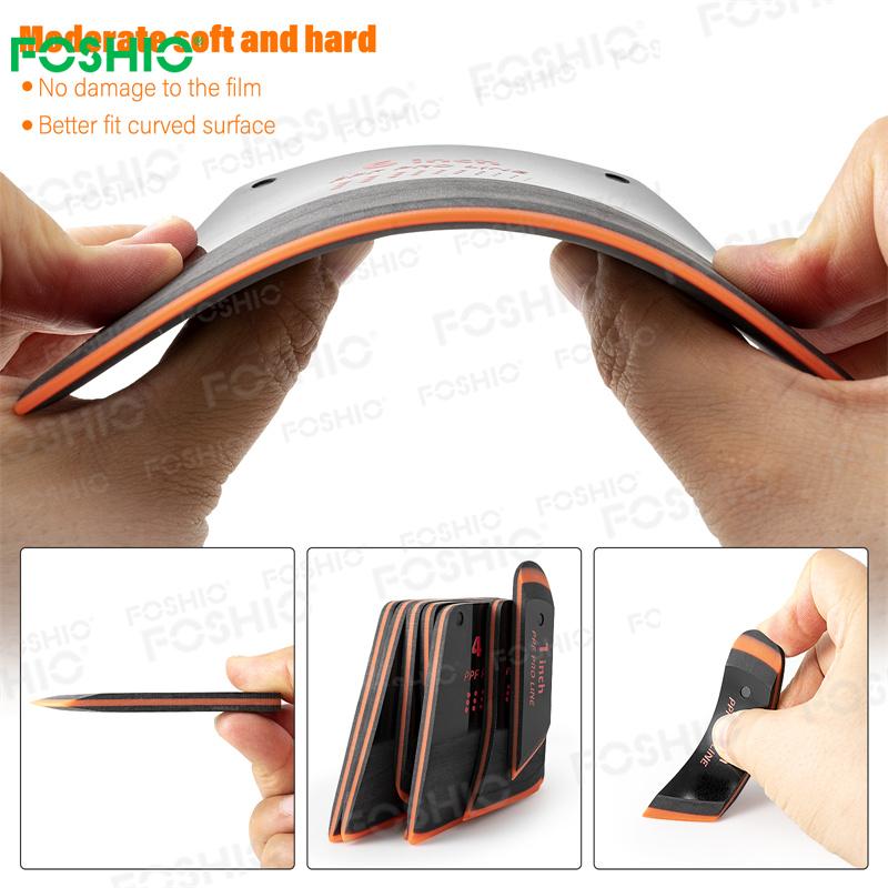 - Material duradero: Fabricadas normalmente con plástico o caucho flexible de alta calidad, estas espátulas están diseñadas para evitar arañazos y daños en la película o la superficie.