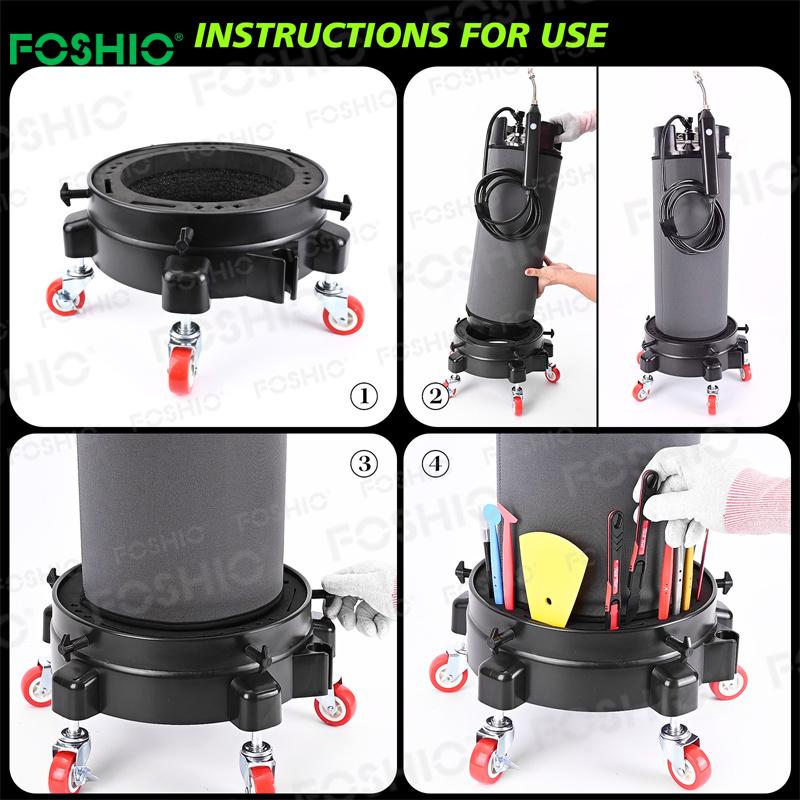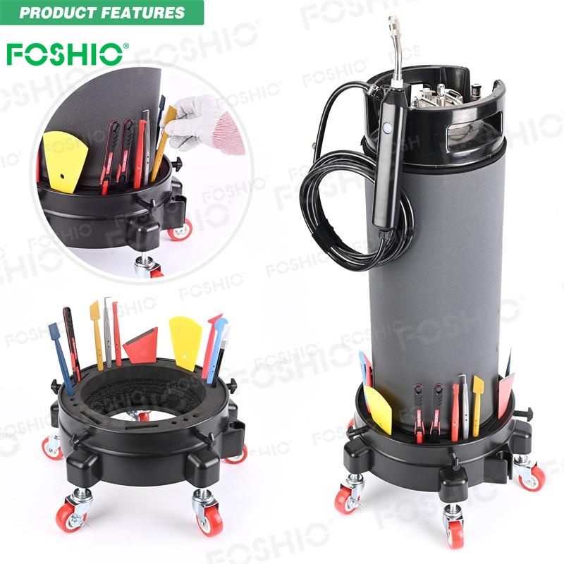 La base para el bote de láminas tintadas tiene una buena capacidad de carga y viene con 4 ruedas giratorias, lo que la convierte en una herramienta muy práctica para usar un bote de láminas tintadas PPF para aplicar la película o limpiar su automóvil.